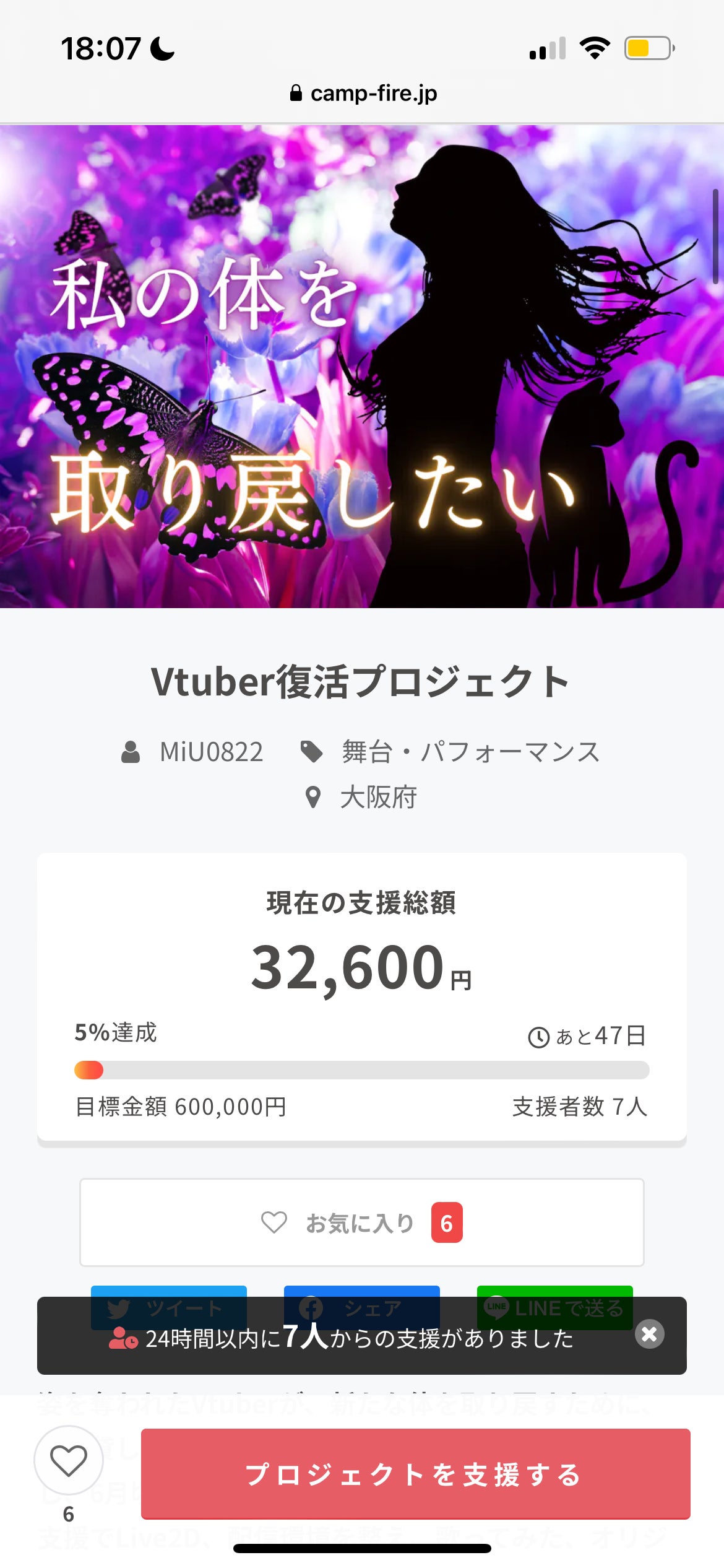 既に、10名もの方にご支援頂きました。本当にありがとうございますこれからも頑張ります!絶対に達成したいので私も発信とプロジェクトの進行気合い入れて頑張ります!応援よろしくお願いいたします!