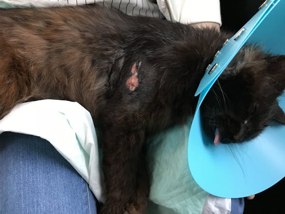黒猫ちゃんは、保護して頂いてる方のお家で、やっと寒さや雨風、空腹、ケンカ、ノミやダニから解放されました。去勢やワクチンなどの支払いはこちらのキャンプファイヤーでということで、立て替えて頂いています…。あのままでは本当に死んでしまいそうだったので、バタバタと動物病院に連れて行きました。