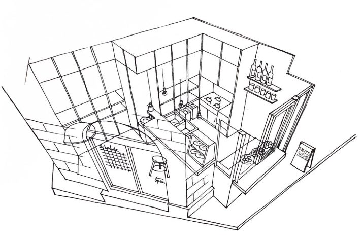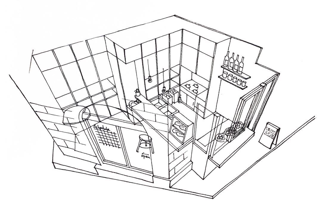 キッチンは1人から2人が余裕を持ちつつ、大きく移動することなくテイクアウトスタンドや各厨房機器にアクセスできるコンパクトなものになっています。コールドテーブル、様々な本格調理に対応したガススチームコンベクションオーブンをはじめ、ガスコンロやシンクなど、菓子製造に必要な設備が揃っています。製氷器やショーケース、ホイロ、キッチンエイドやフードプロセッサーなどもリクエストに応じて随時設置予定です。