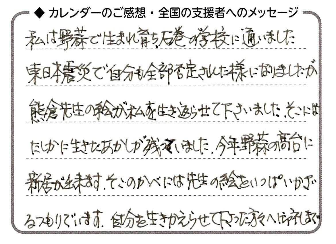 ここで、今回のクラウドファンディングのプロジェクトページを作成している時に目に止まった1通の感想ハガキのメッセージをご紹介します。