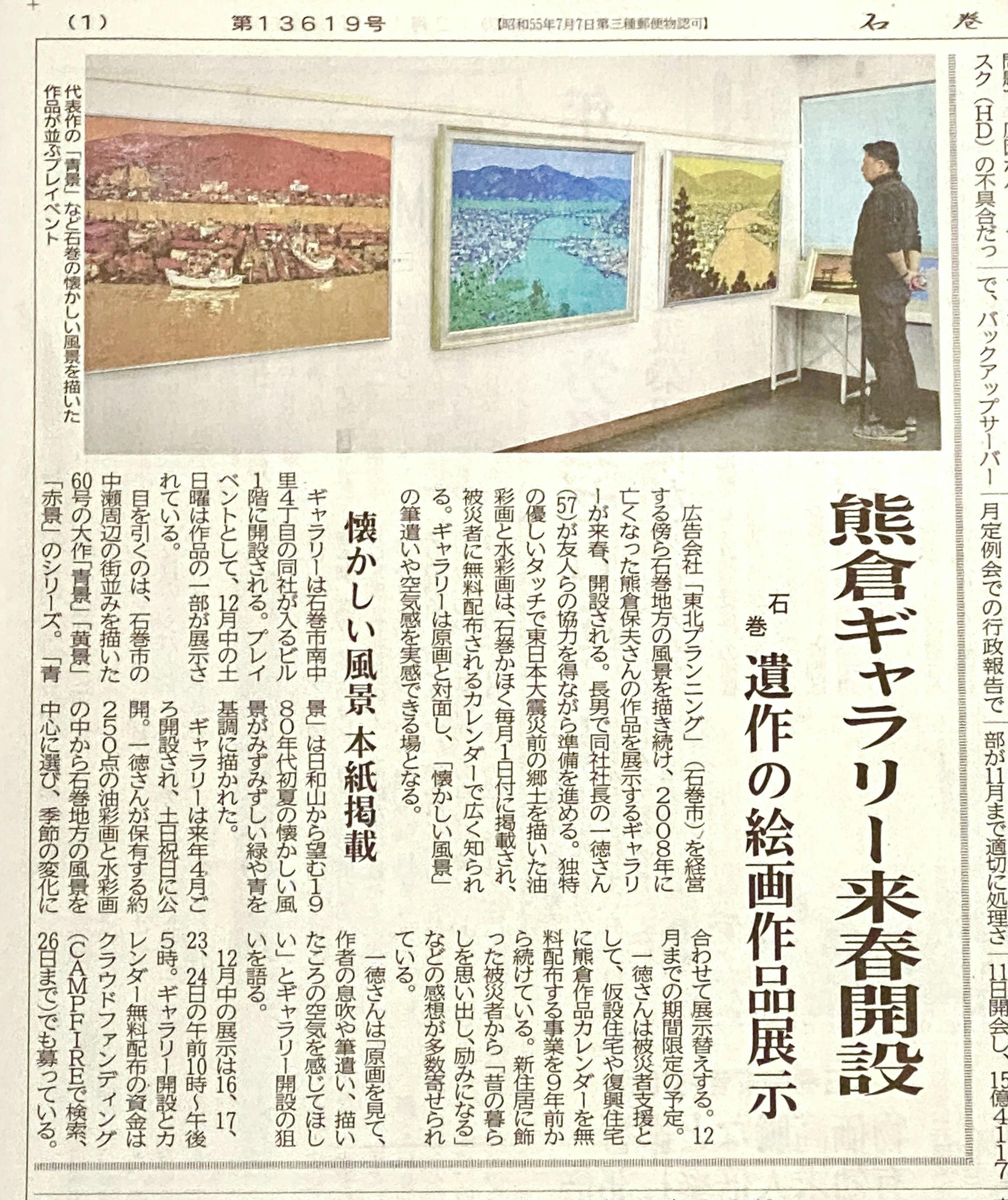 先日、地元のメディア「石巻かほく」さんに、父の「ギャラリー構想」を取材して頂き、
