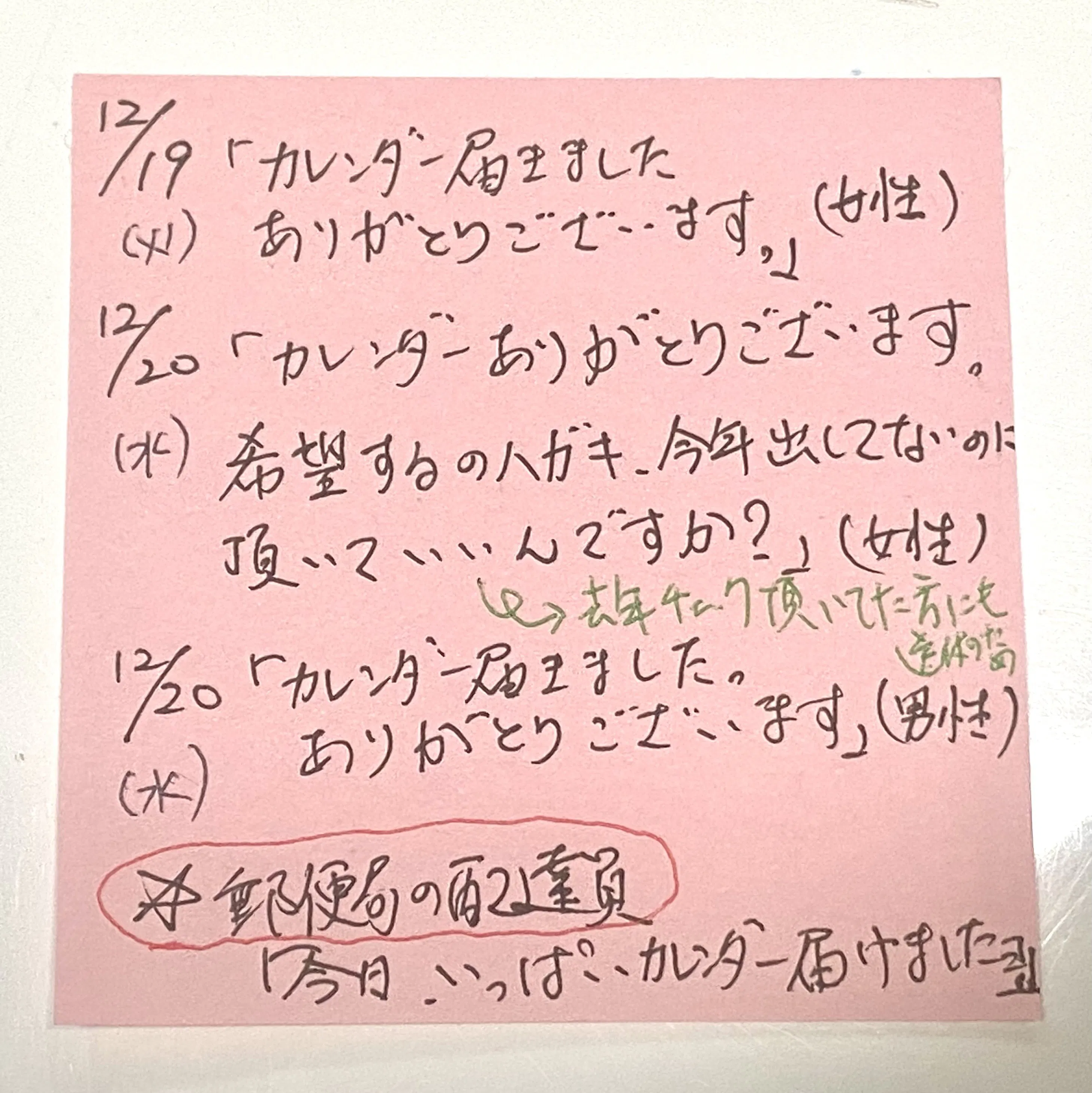 先週土曜日に、復興住宅の希望者さんへ発送した、カレンダー、届き始めた様です!!