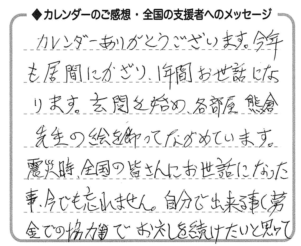 ☆今年、絵画カレンダーをお届けした方から、第1号の『感想のハガキ』が届きましたー!!!