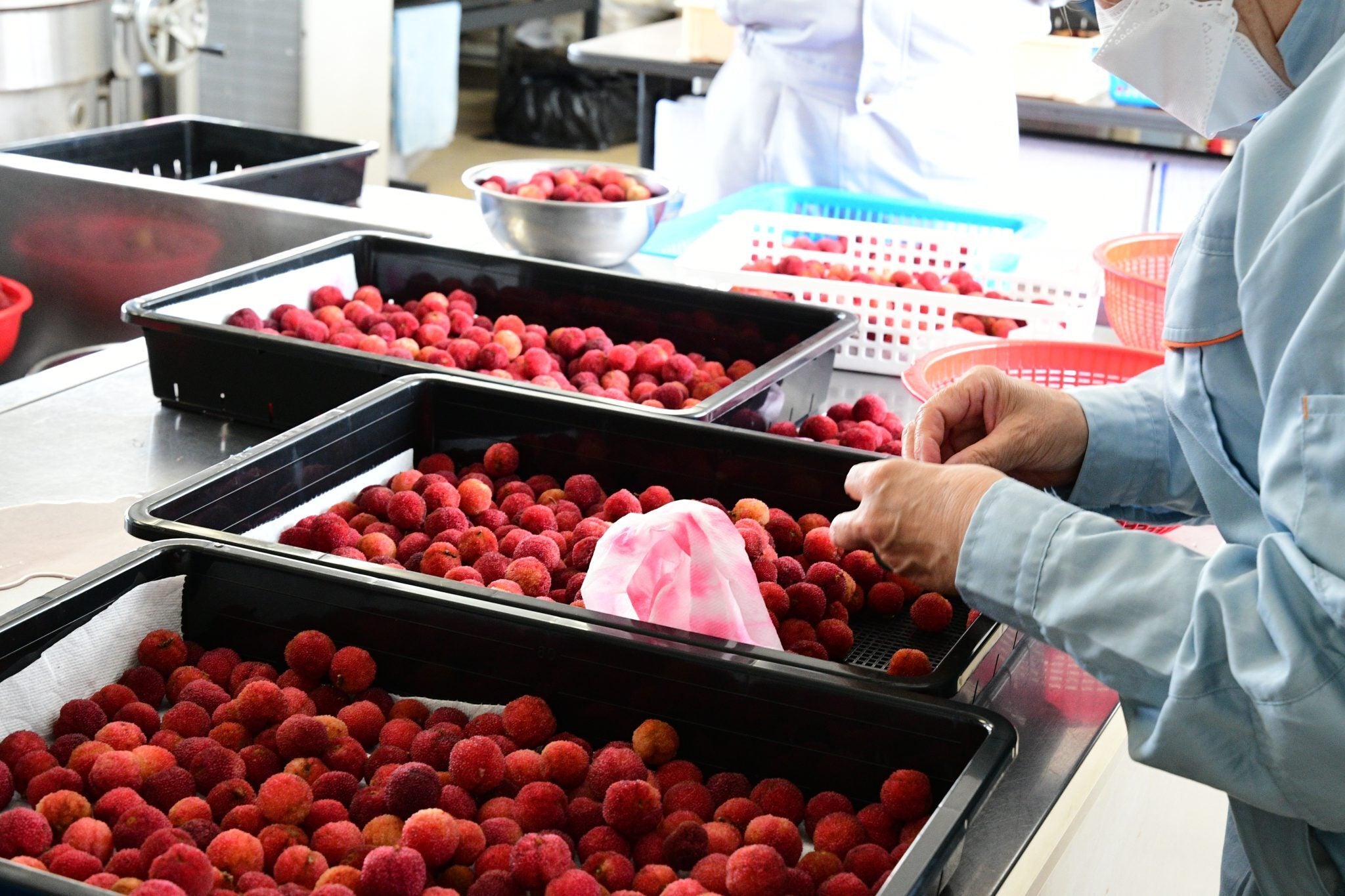 やまももはすぐに傷んでしまうので、実をまるごと急速冷凍したり、すぐにピューレ化加工をしています。