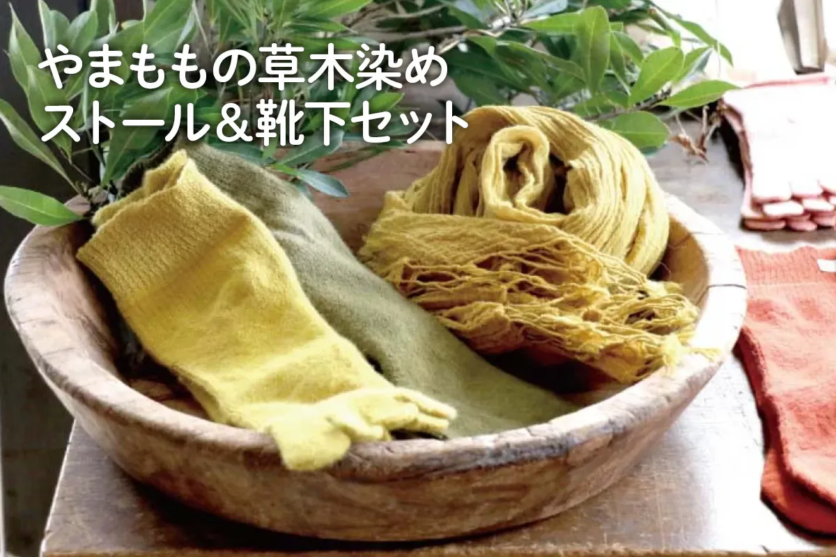 【やまももの草木染め ストール&靴下セット】