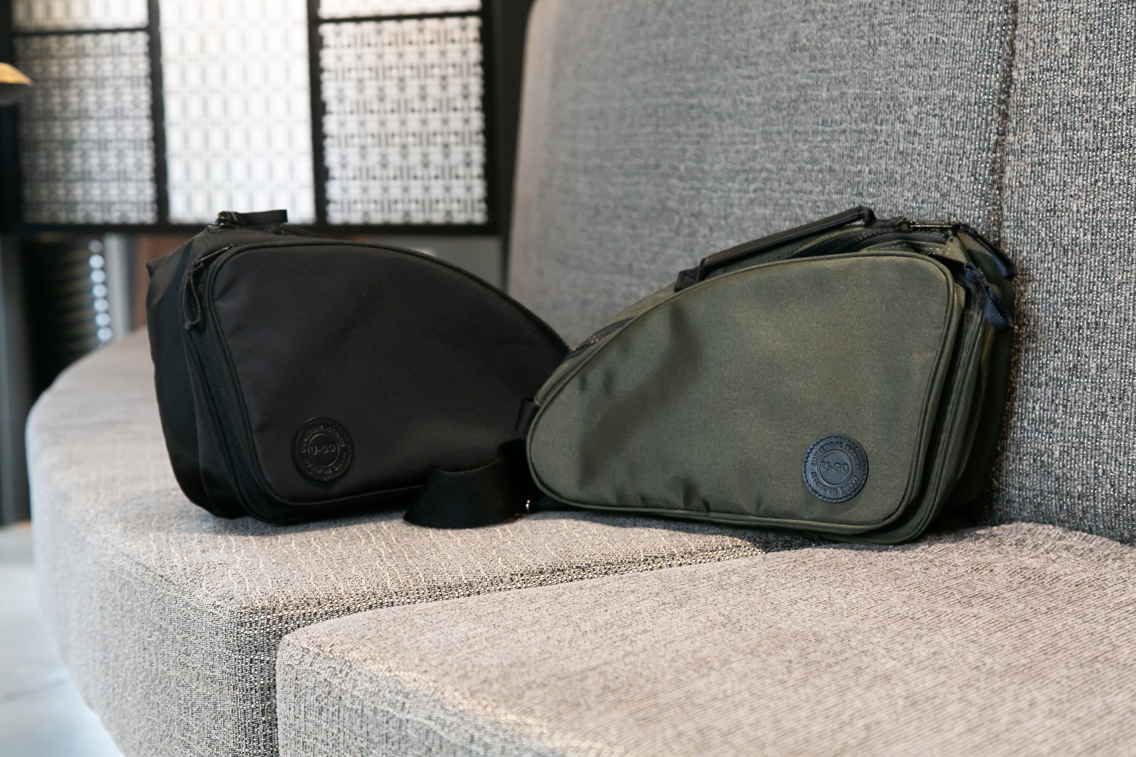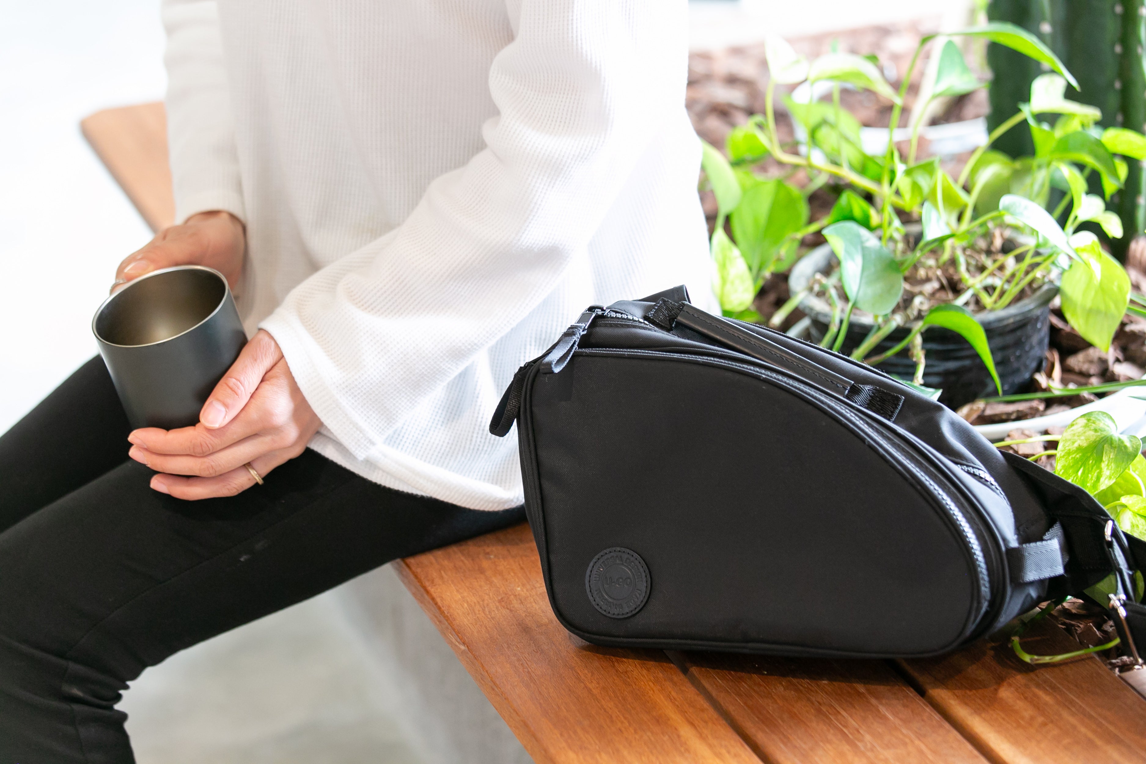 U-GOのバックは自立し、かつ持ち手のハンドルがついているためサッと持てる。実際に使用者目線に立ったモノ作りを心がけております。