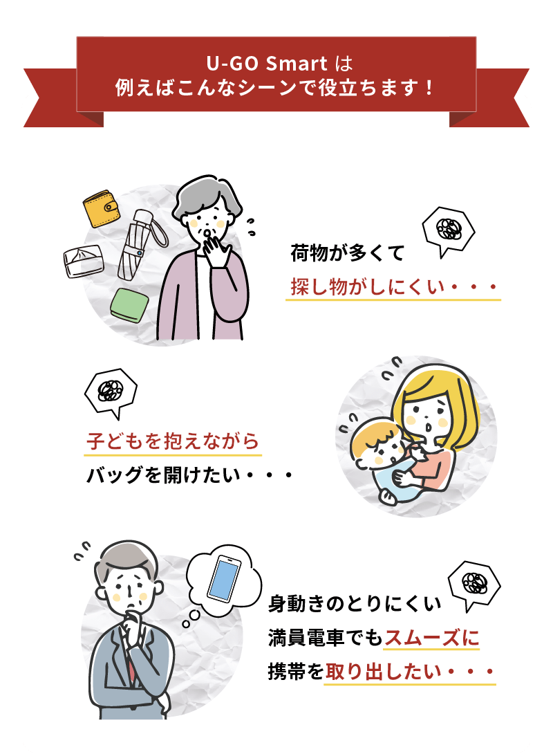 一連のすべての行動を片手で、快適に行えるバッグを創る。