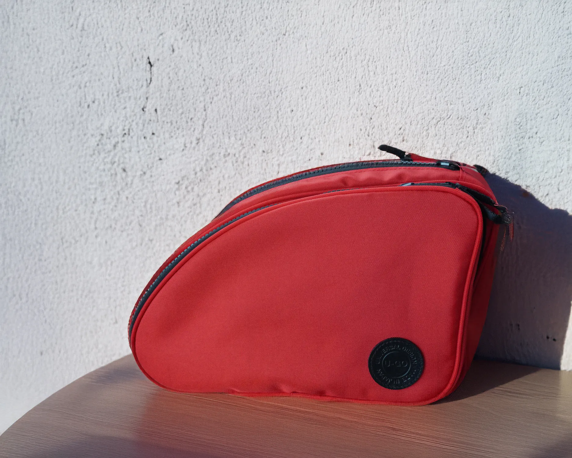 U-GOのバックは自立し、かつ持ち手のハンドルがついているためサッと持てる。実際に使用者目線に立ったモノ作りを心がけております。