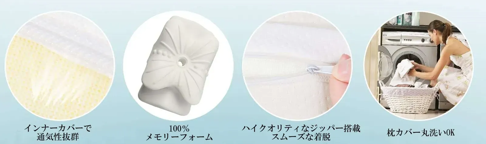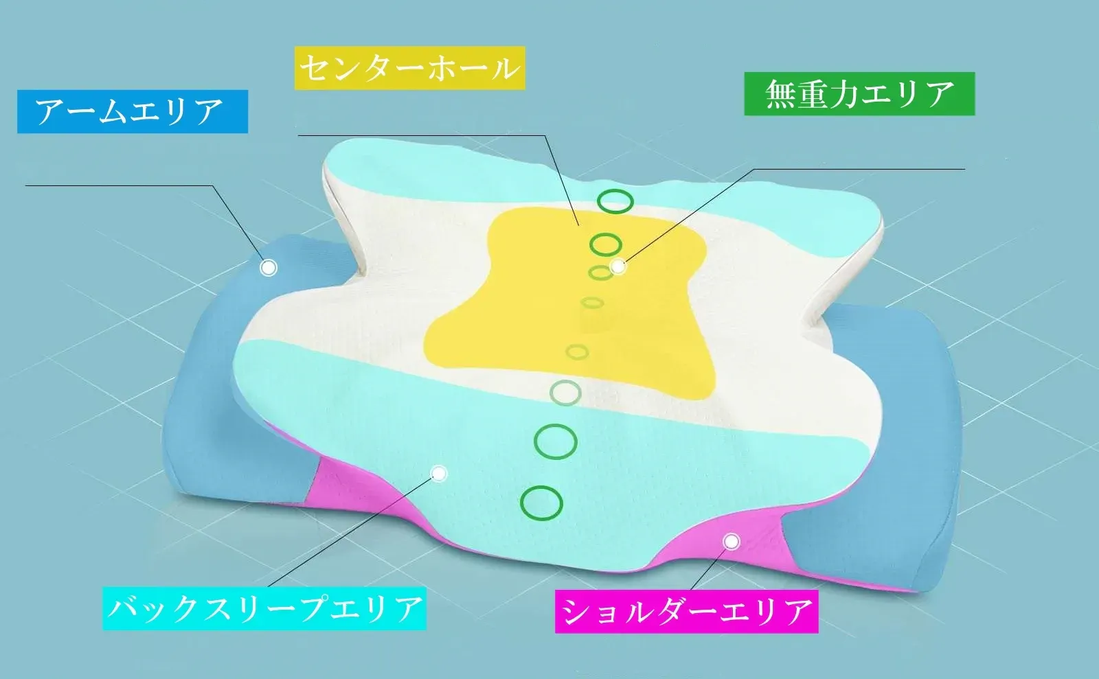 頭と首をサポートし背骨を支え背骨への圧力を解消。