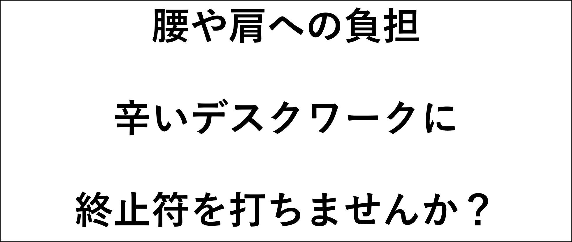 ・目線が下がってしまい猫背になって腰が痛い…・ずっと座ったままでお尻が痛くなってしまう…・気分転換のため立ったままデスクワークをしたい…・目線が下がって肩への負担が気になる…・首がつらい…