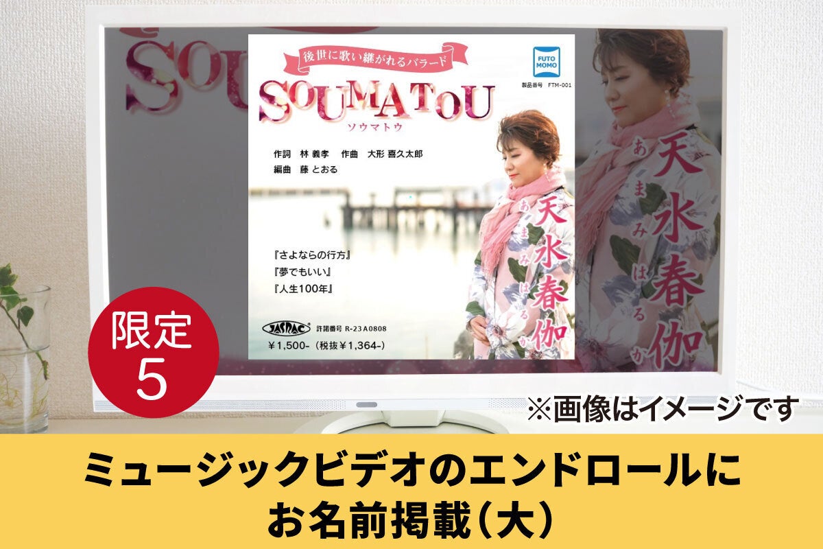 一番のおススメは、「ミュージックビデオに出演権」!天水春伽のオリジナル曲『人生100年』のMVに出演できる権利です。楽しい撮影になること間違いなし!太もも隊にご参加いただける方、お待ちしています。