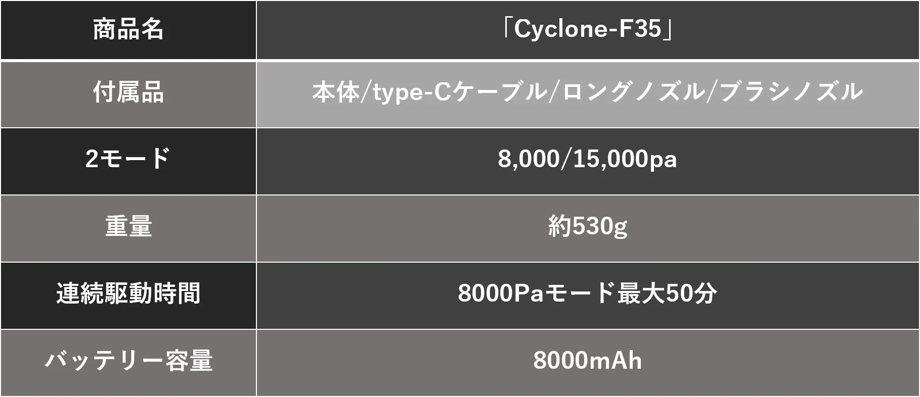 是非、パワフルでポータブル性も高くお手入れもしやすい「Cyclone-F35」 を一台手に取ってみませんか?