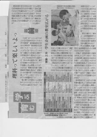 今日のご報告は、今朝の読売新聞朝刊の暮らし教育12版に、「工作・実験 学生企画の教室」をテーマにサイエンスリンクが紹介されたことです。