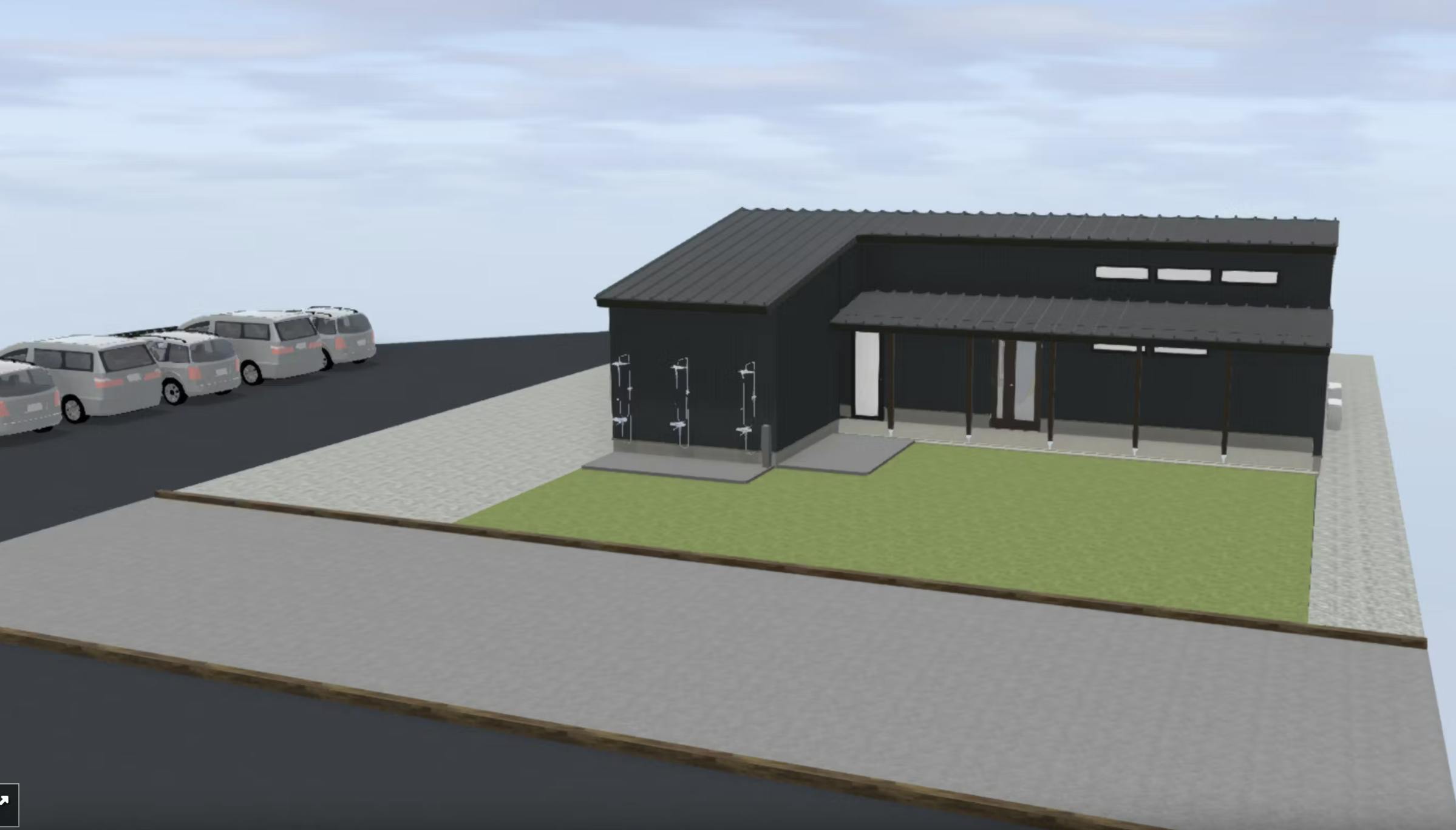 上画像の芝生手前の部分がパーク予定部分です。20m×6mあります。ファーストゴールの200万円が達成できれば、この部分を画像のように平らなコンクリートにできます。