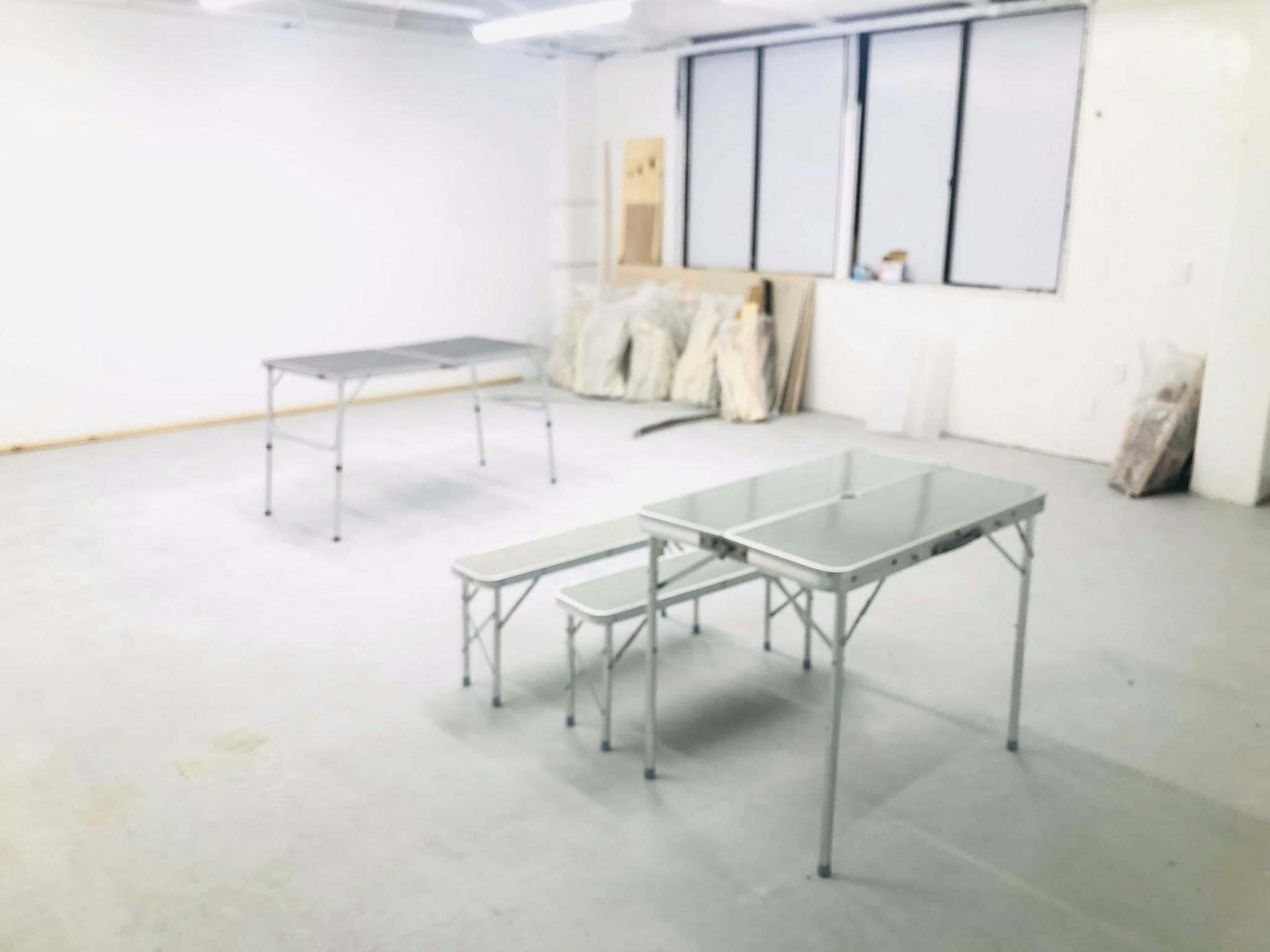 とりあえず持ってた、キャンプ用のテーブルとか置いてみた。
