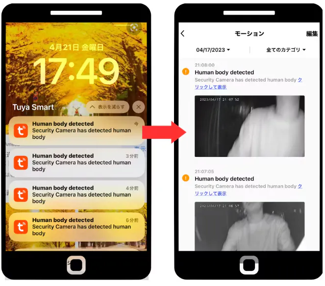 AIが検知した場合、スマホアプリに通知がいきます。