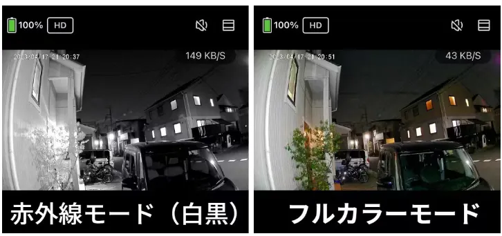 暗闇をカラーで映すフルカラーモード!搭載。