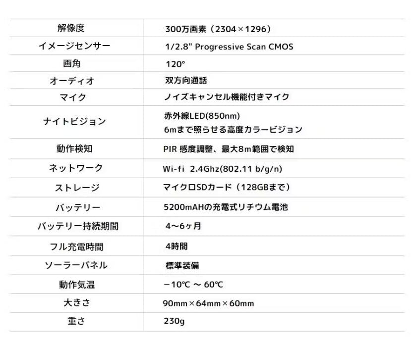 5200mhAの大容量バッテリーを搭載。ソーラーパネルがなくても最大6ヶ月間(180日間)稼働し続けます。