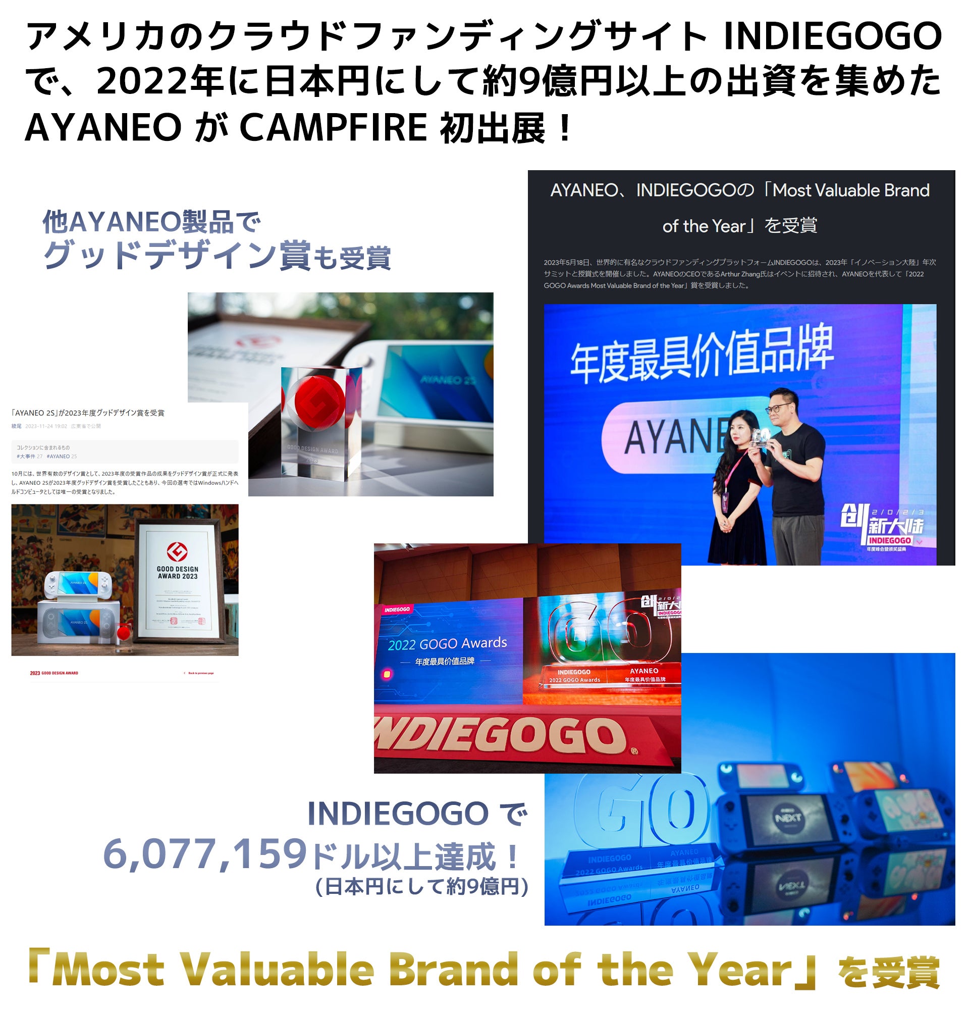 AYANEO社が発表した初代デバイスは、中国に続いて、全世界でクラウドファンディングを行ない、数千万人民元という出資を募っています。