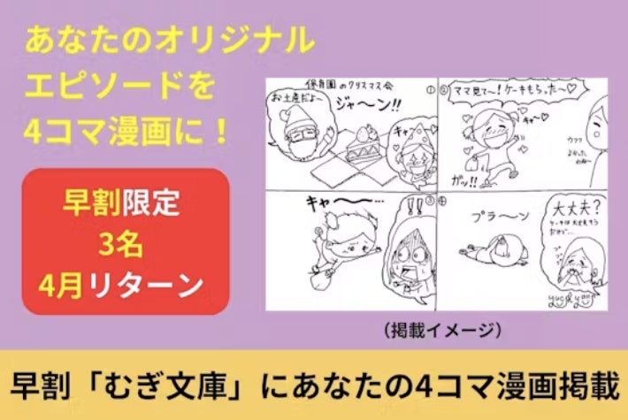 「むぎ文庫」が目指す未来、つまり今回のこのクラウドファンディングで作成したい「こうあるべきからの楽しいと思える子育て事例集」につながる想いを伝えたところ、月2回の4コマ漫画をむぎ文庫用に描いてくれることを快諾してくれたんです。