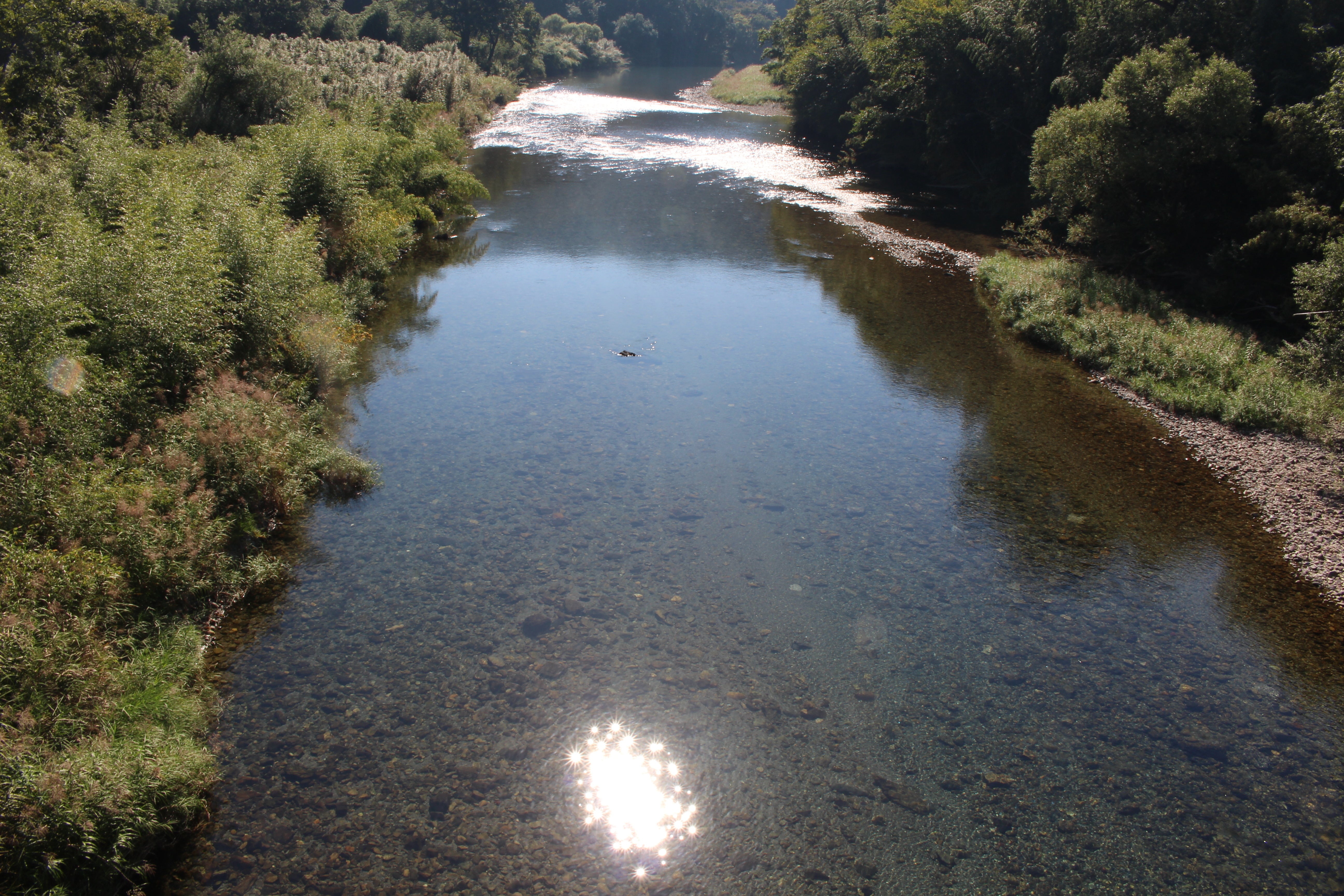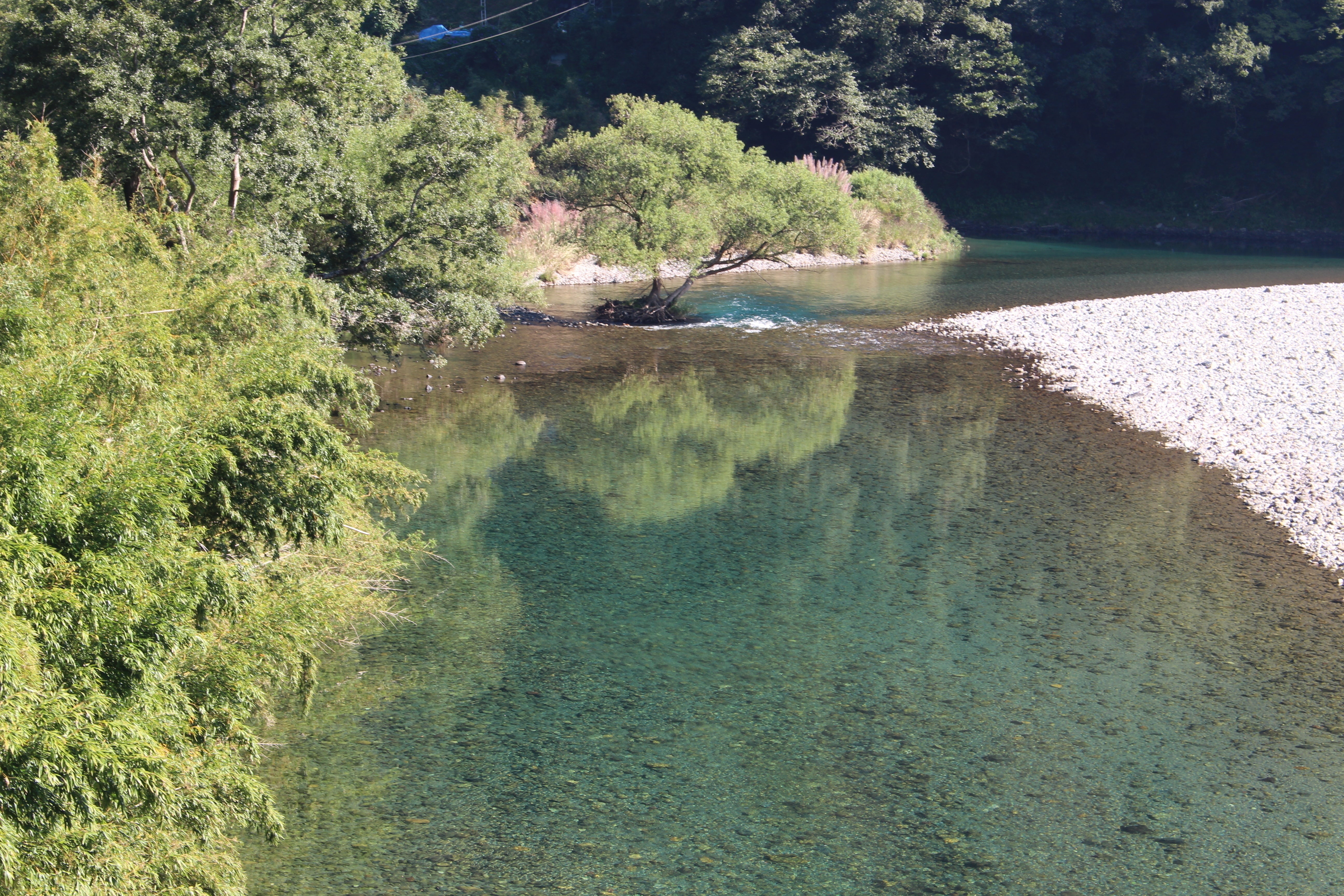 車で大分県国東から3時間の道のりを運転してきて、ある川のそばを通りがかった時に、渓相の美しさ、深い川底まではっきり見える水の透明度に、車を止めてしばし見惚れていました。