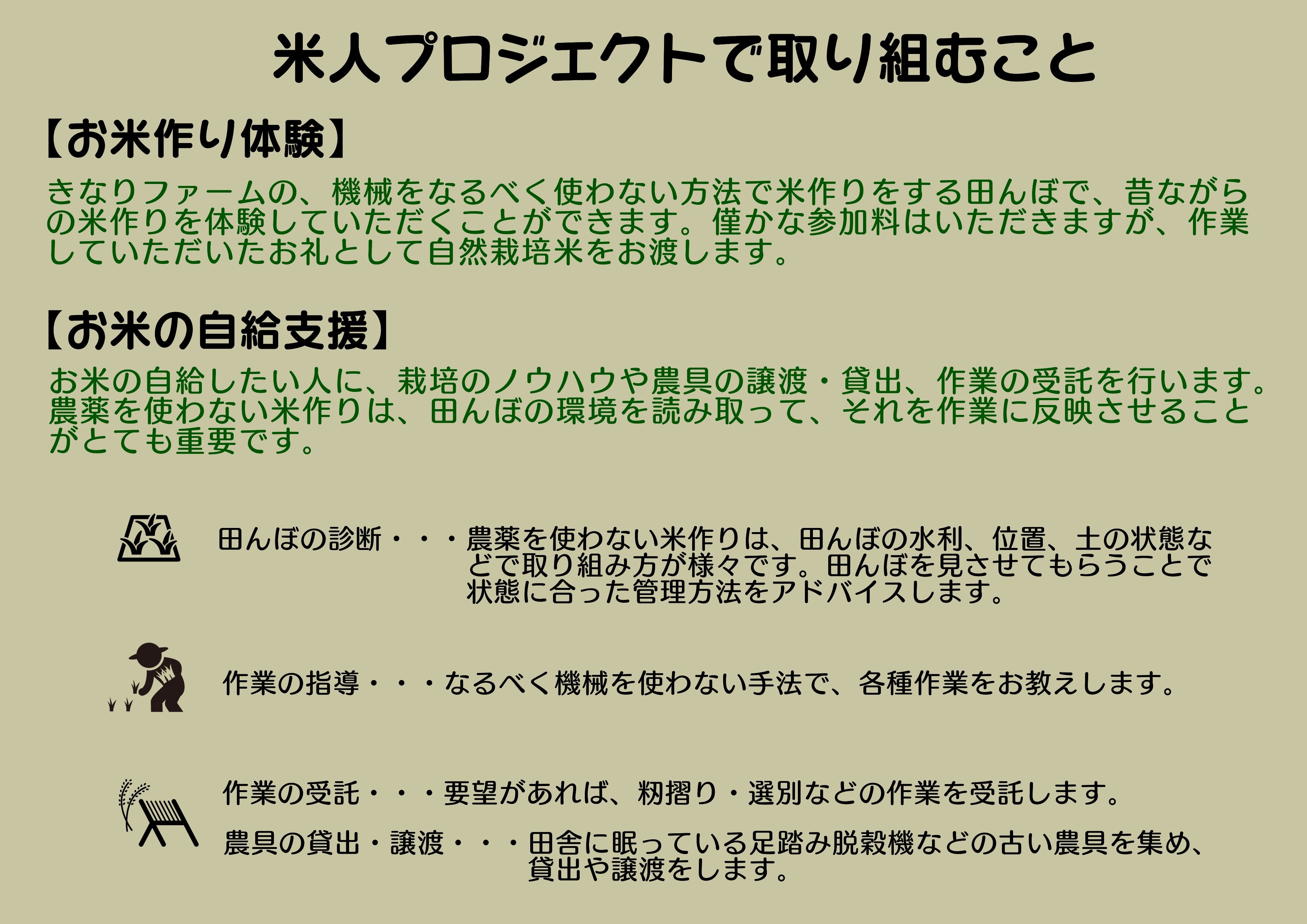 ・お米に余計な物を入れずに、そこにある地球の資源のみで育てたい
