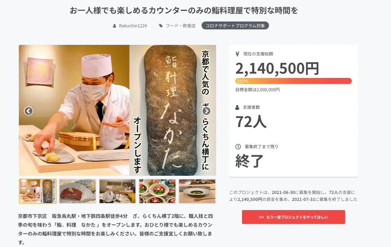 今回、2回目のクラウドファンディングとなります。