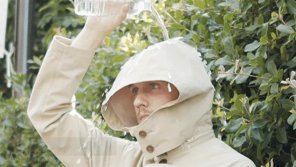 そして、ゲリラ豪雨などが来ても「耐水圧20,000mm」「JIS規格の最高水準である撥水性5級」という高スペックの「レインコート」として使えます。