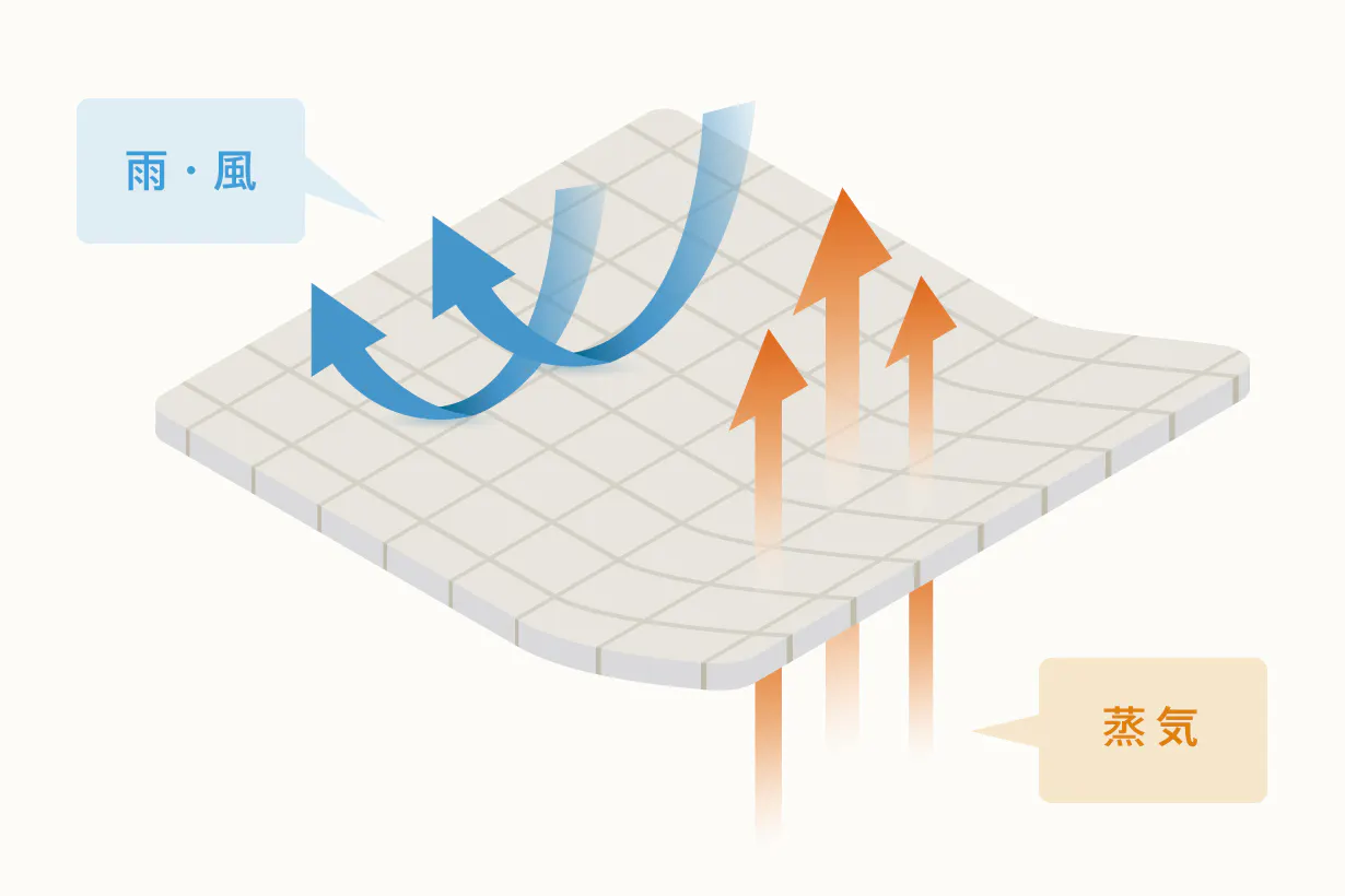 ※耐水圧・透湿性・撥水性のいずれの機能性も洗濯などを繰り返す事や経年劣化による効果減少は避ける事ができません。