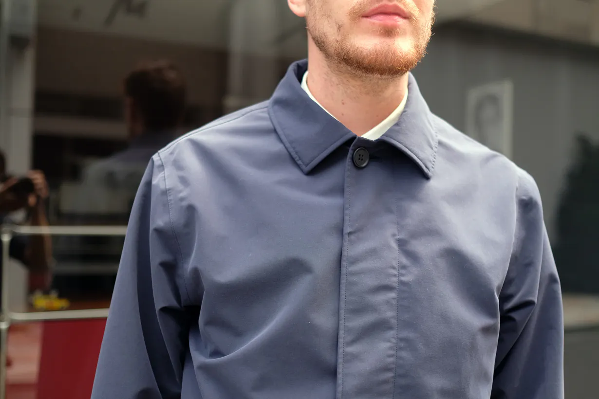 あとは、わずかに残った雨粒もハンカチやタオルで拭いたら、元どおりの「ステンカラーコート」に。