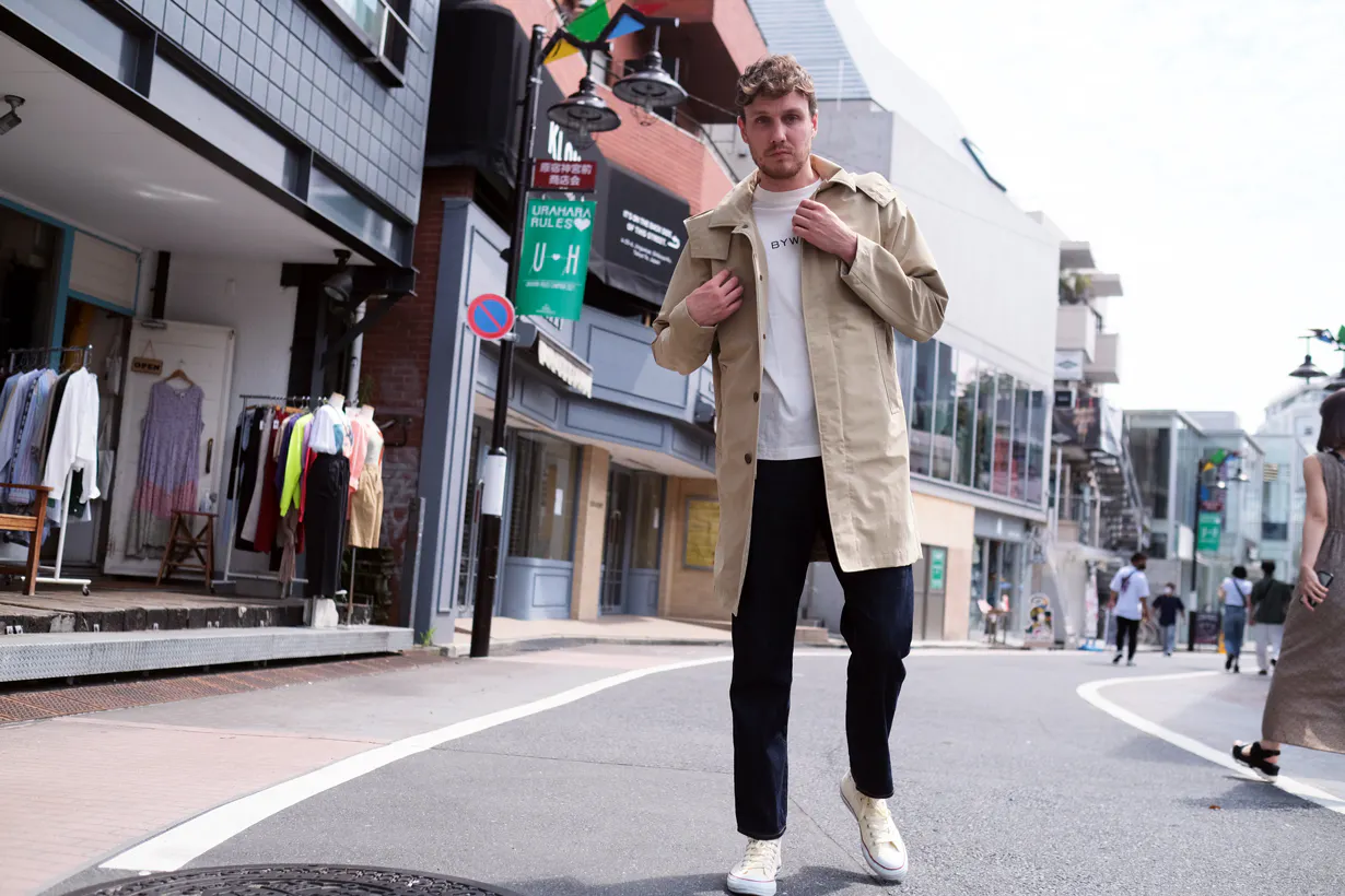 春先や秋口など、薄手の「ステンカラーコート」としてご利用ください。
