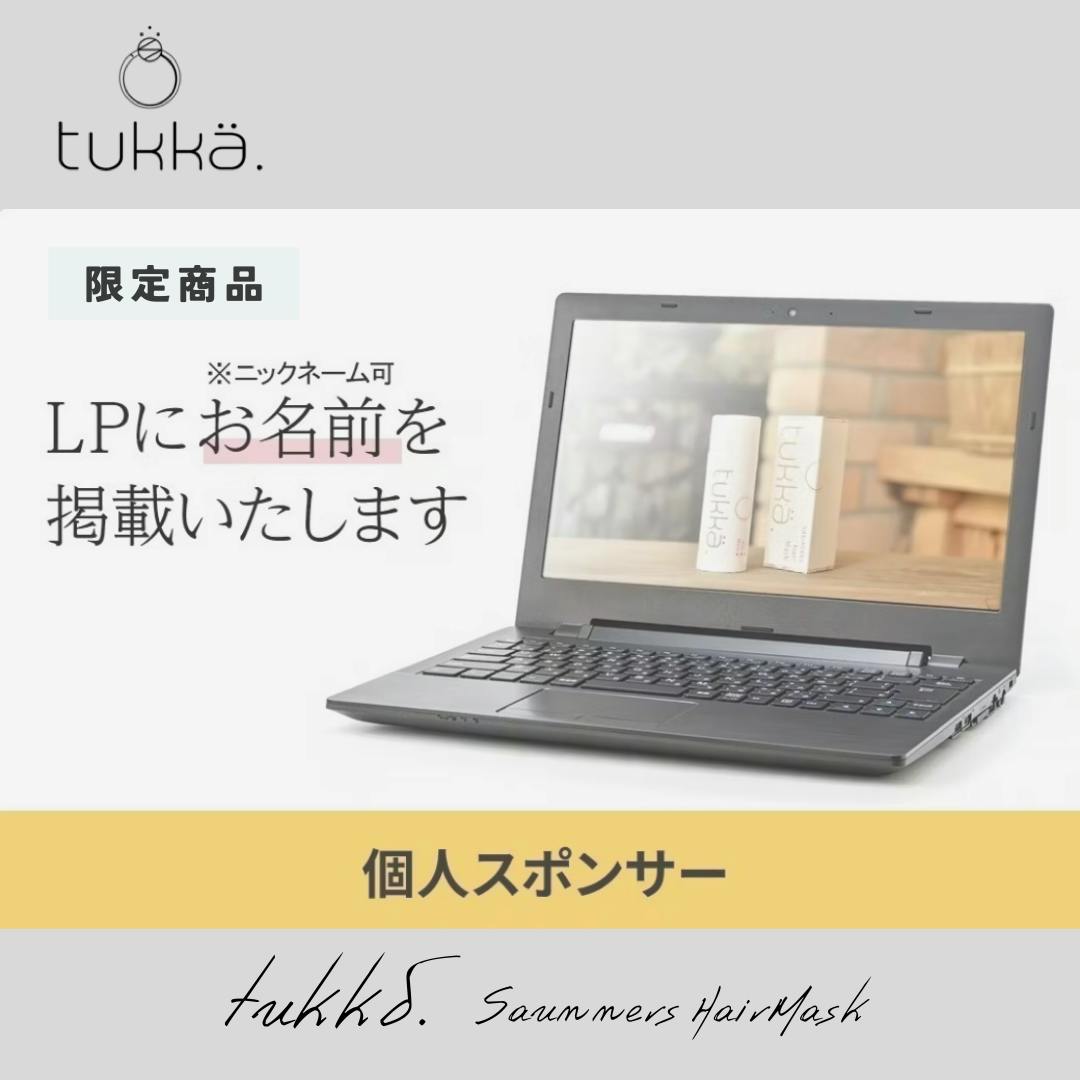 また現在制作中のtukkä.サウナーズヘアマスク販売用LPに"スペシャルスポンサー"としてお名前を入れられるリターンを個人様用、企業様用と準備しております。とても素敵なLPになっておりますので、tukkäの始まりのメンバーとしてお名前を入れてみませんか?こちらもお見逃しなく!
