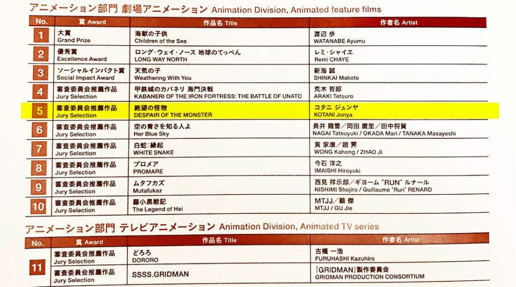 第23回⽂化庁メディア芸術祭アニメーション部門審査委員会推薦作品