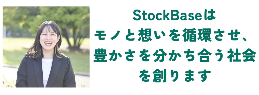 この社会から、「もったいない」という言葉をなくすのが、StockBaseの究極の目標です。まだ使えるものを捨てることって、もったいないと感じますよね。もし、まだ使える全てのものを別の形で使えるようにしていくスキームができれば、この社会から「もったいない」という言葉自体がなくなっていくと思うんです。そんな社会を目指しています。