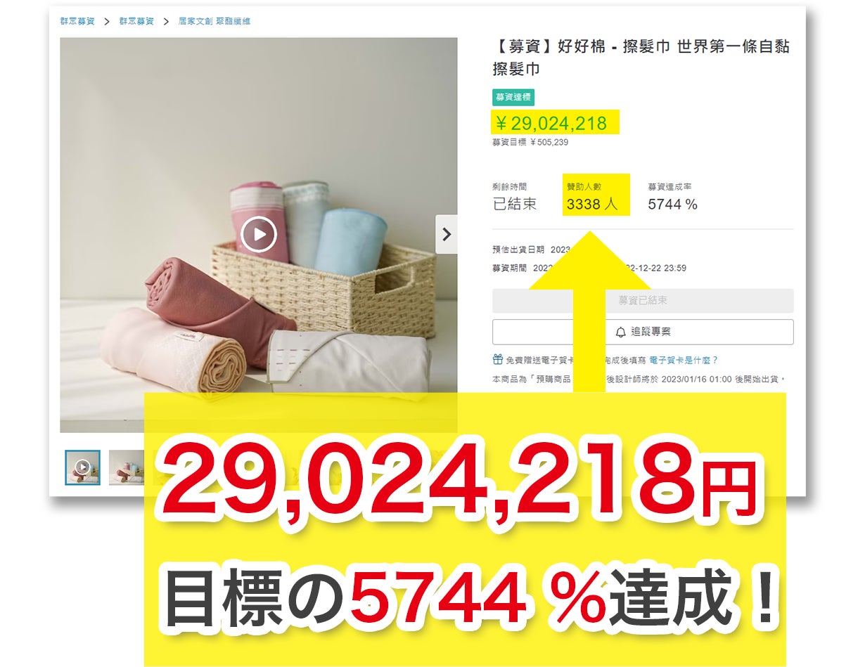 販売から約1年間で台湾やその他の国を合わせると、10万枚以上のタオルを販売し、お客様よりたくさんの喜びの声をいただいております。