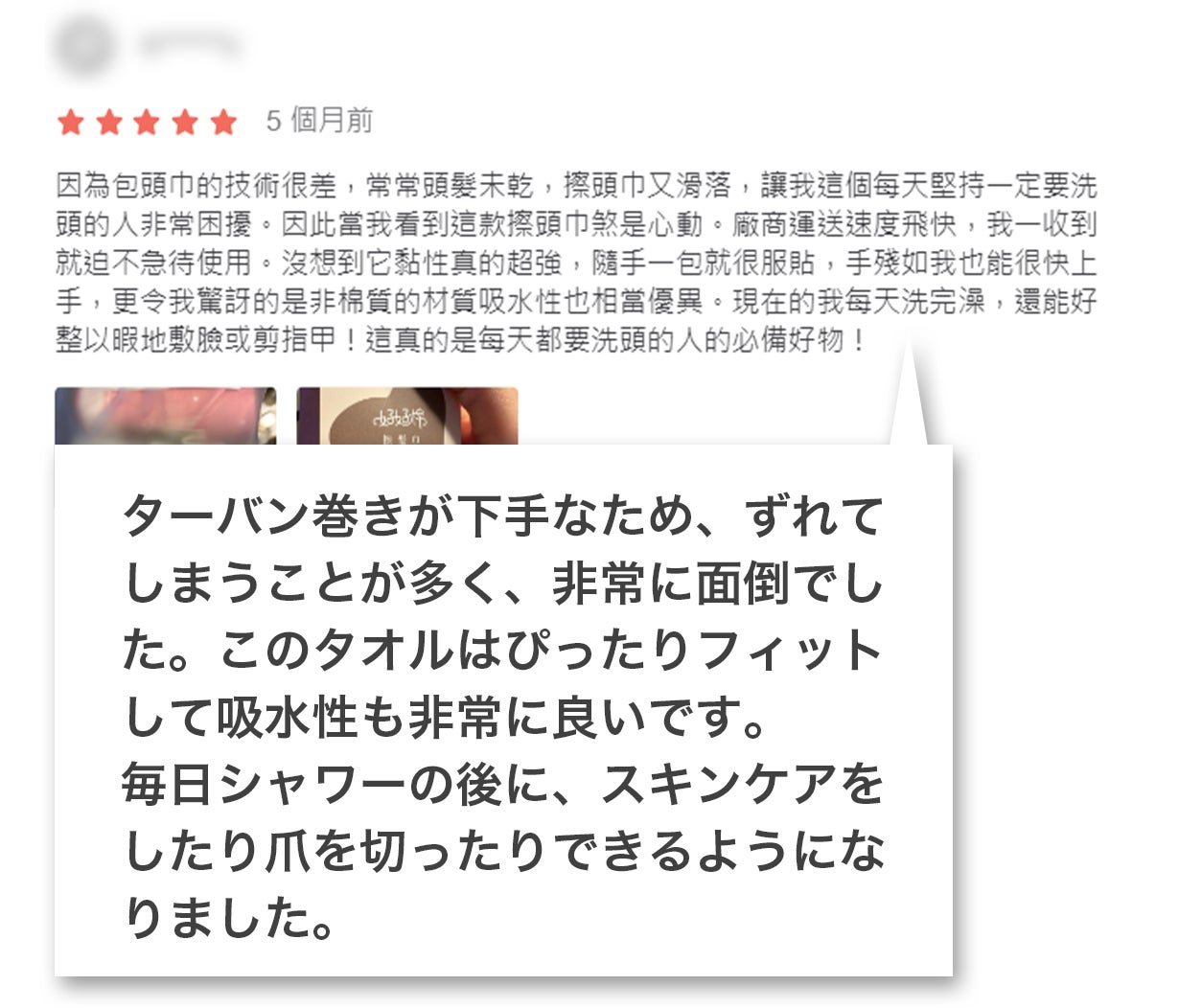私自身「好好棉ヘアタオル」を使用したところ、髪が濡れていることを忘れるくらいとても快適で、お風呂上りでも自由で快適な時間を提供してくれる画期的なヘアタオルだと感じました。