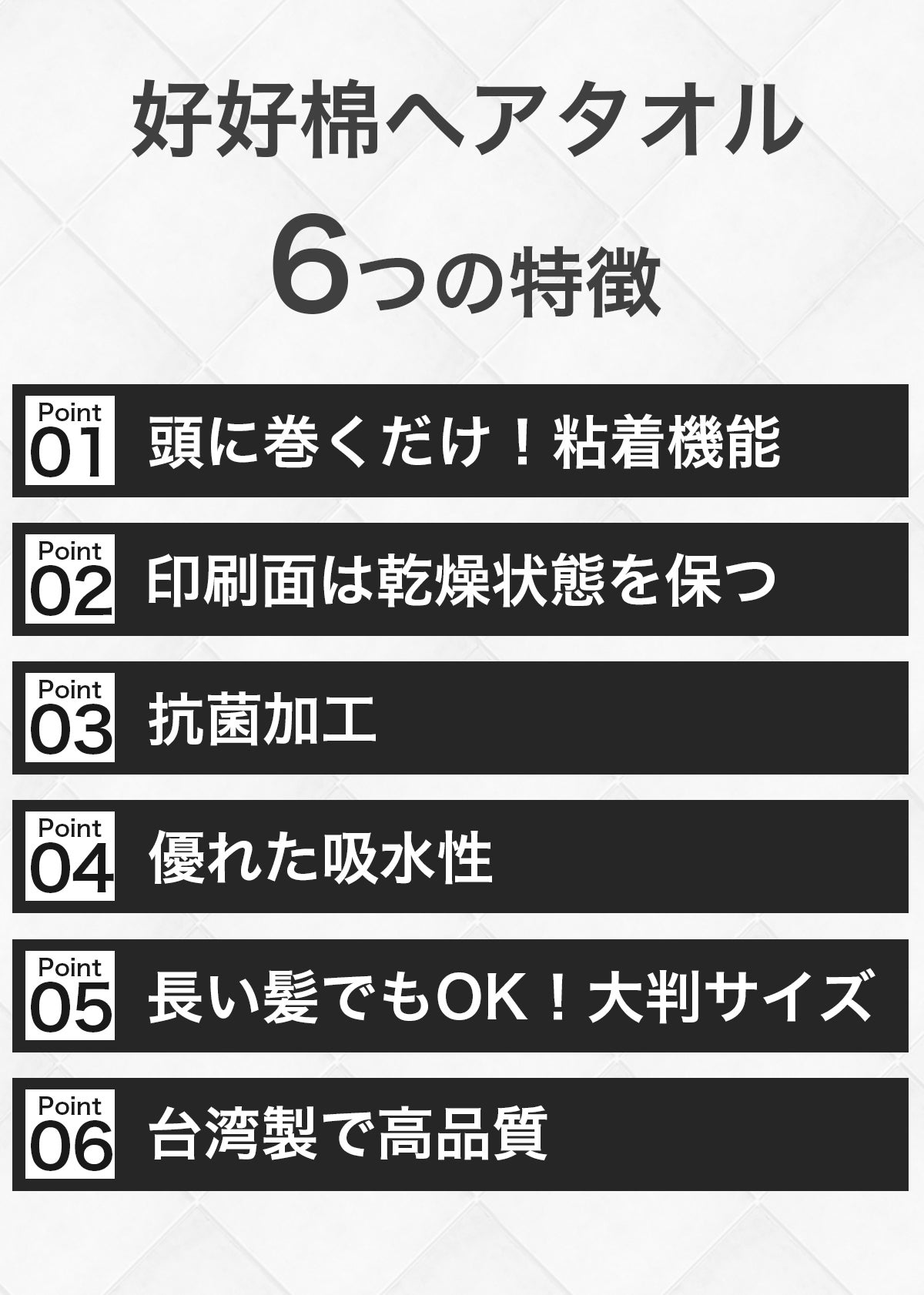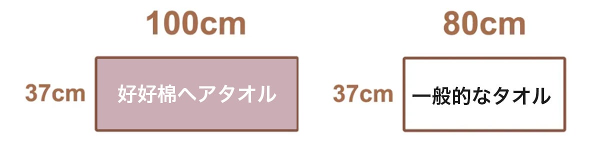 ロングでもショートでも、ヘアスタイルに関係なく使える大きめサイズです。もちろん、一般的なタオルとしてもご使用いただけます。