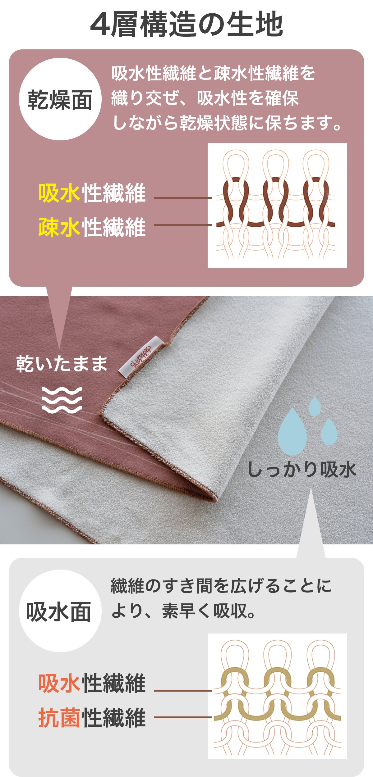 吸水性の高い繊維を織り込み、450ccをスピーディに吸収!