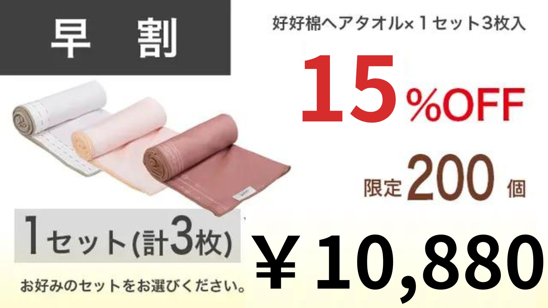 2024/12/27 18:00お世話になっております!本日より、Makuake STOREにて好好棉ヘアタオルの販売を開始いたしました!◆好好棉ヘアタオル Makuake STOREhttps://store.makuake.com/products/87811538946243枚セットでの販売はもちろんのこと、1枚から単品でご購入いただけるようになりました!※単品の場合は、透明袋(OPP)の梱包となります。なお、Makuake STOREより、クーポンが発行されておりますので、お得にご購入いただけます。単品で2枚ご購入いただけたら、1000円OFFクーポンが使用できます。在庫も多くないため、この機会にお早めにご利用ください。◆Makuake STOREクーポンhttps://store.makuake.com/blogs/news/2024-2025※2025年1月10日(金)14:591年間、頑張った自分へのご褒美や、プレゼントにも最適です。それでは、皆さまよいお年をお過ごしください! もっと見る【発送完了】全ての発送が完了いたしました!