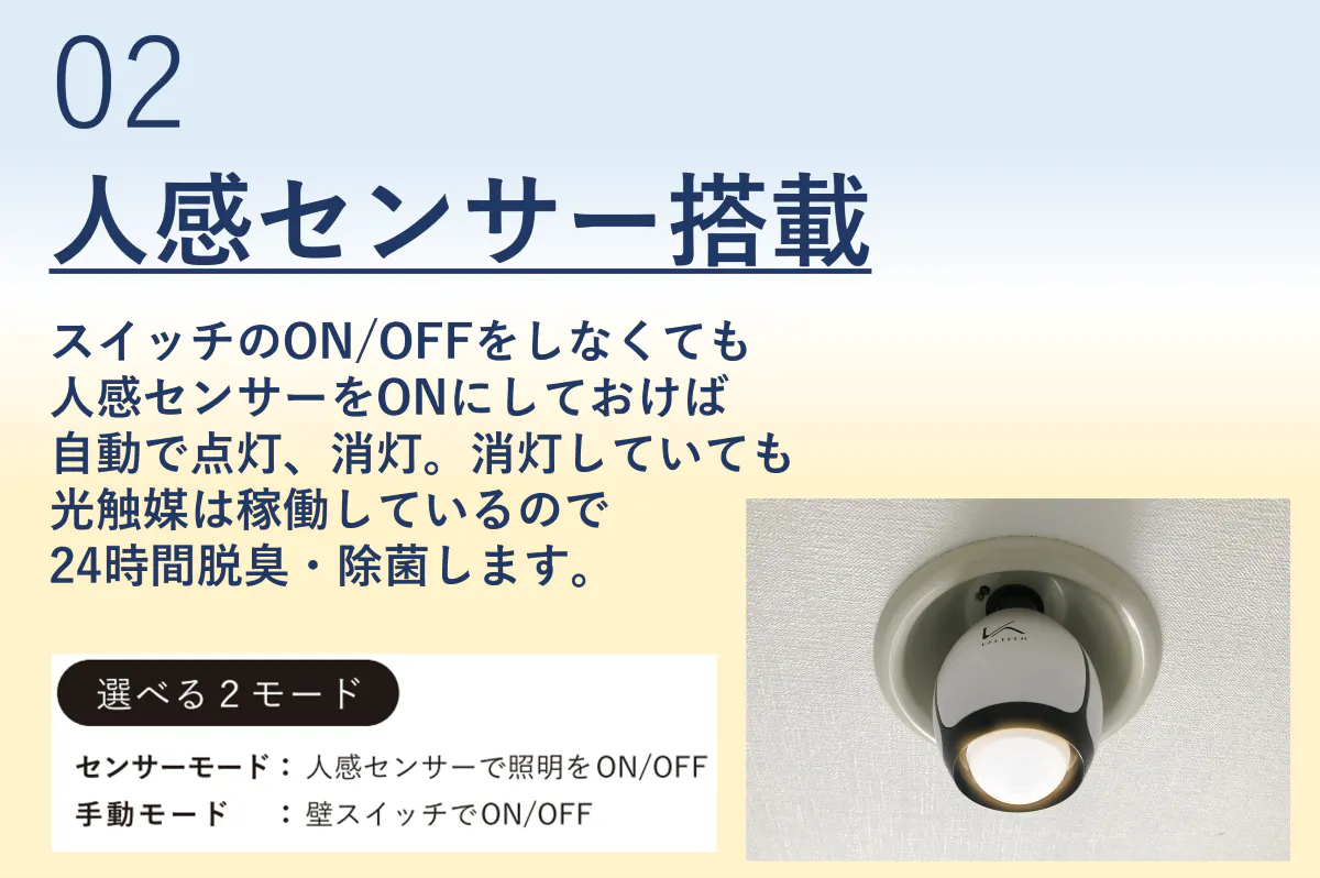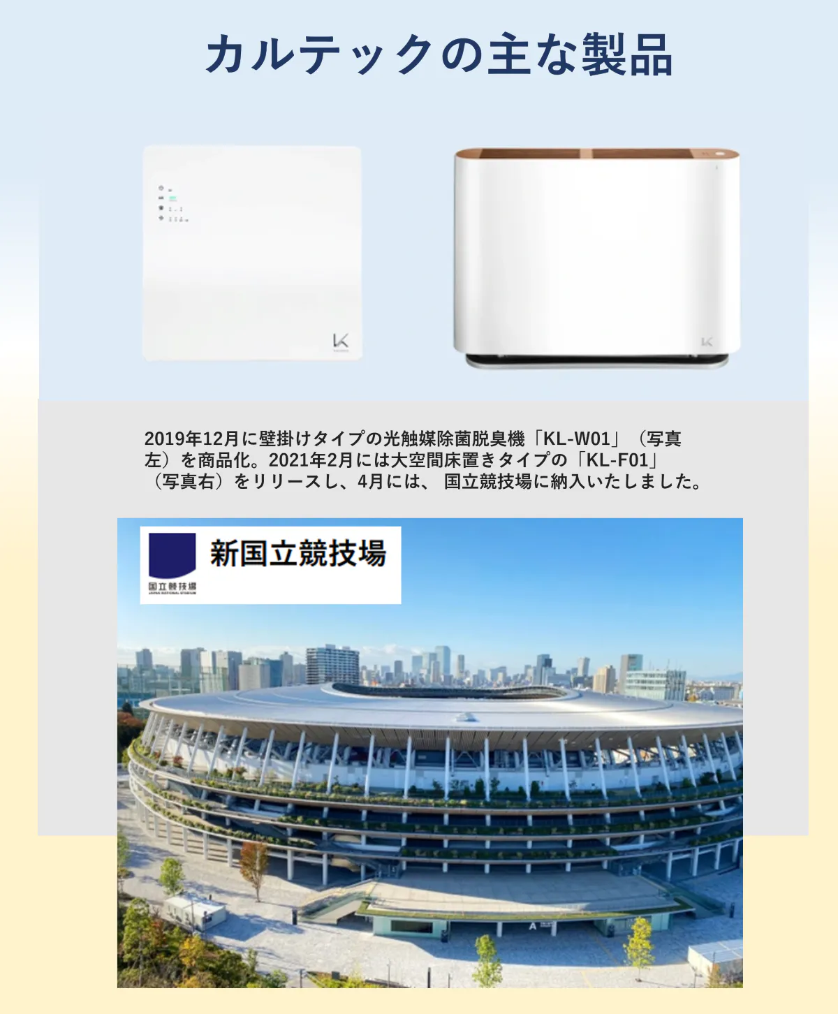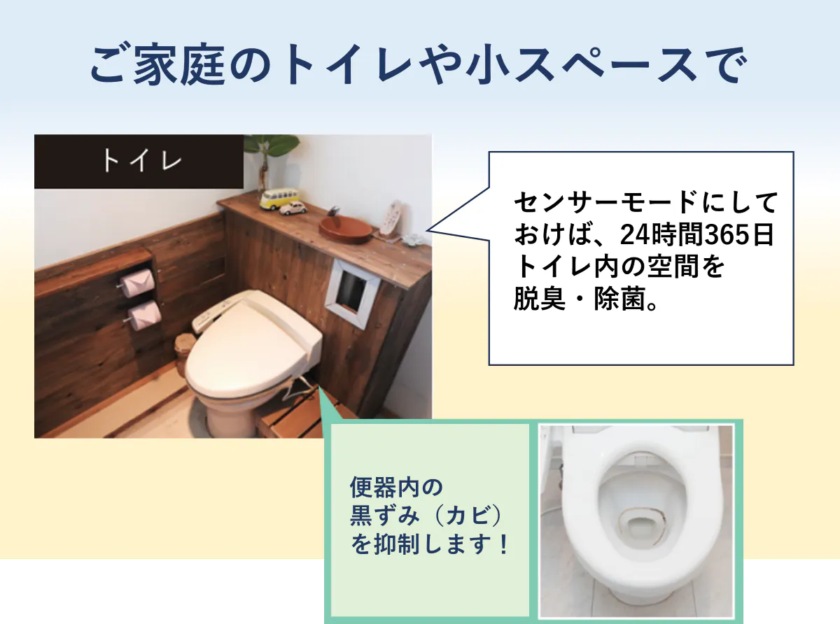 カルテック独自の機構設計で、反応効率を最大限に発揮!優れた光触媒材料の開発力とその反応率を限界まで向上させる製品開発力により、圧倒的なパフォーマンスでご家庭の小スペースの脱臭・除菌を実現します。