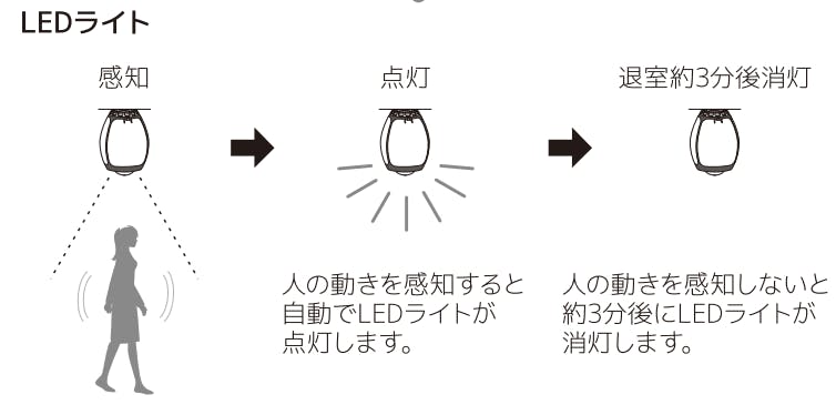 手動モードの際は、壁スイッチに連動してLEDライトを点灯/消灯します。