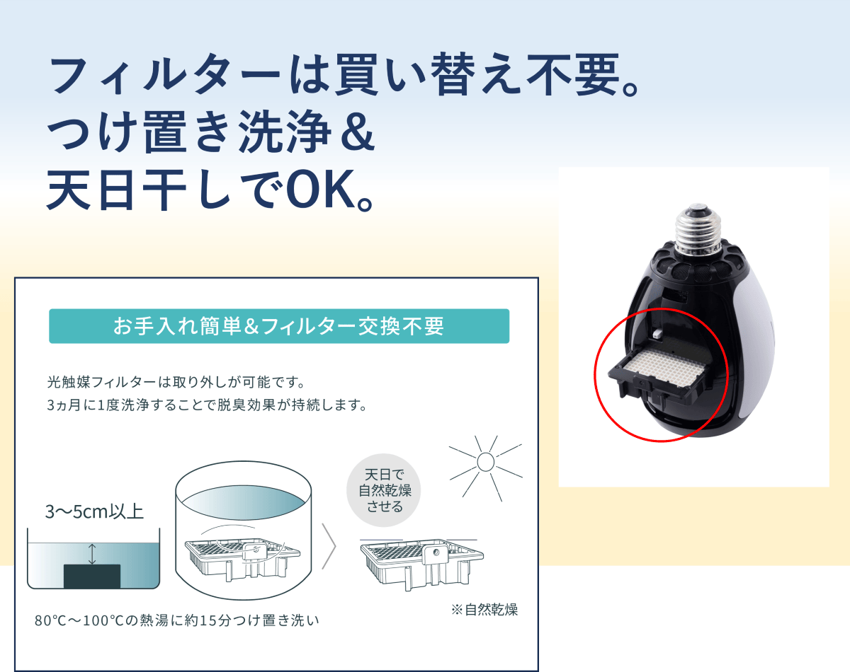 光触媒フィルターは6カ月に1回程度になります。