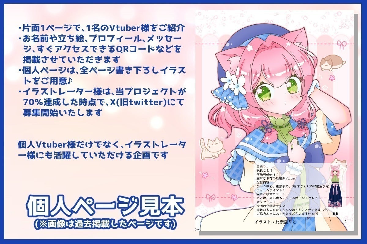 1名につき片面1ページ。立ち絵やプロフィール、メッセージを掲載いたします。