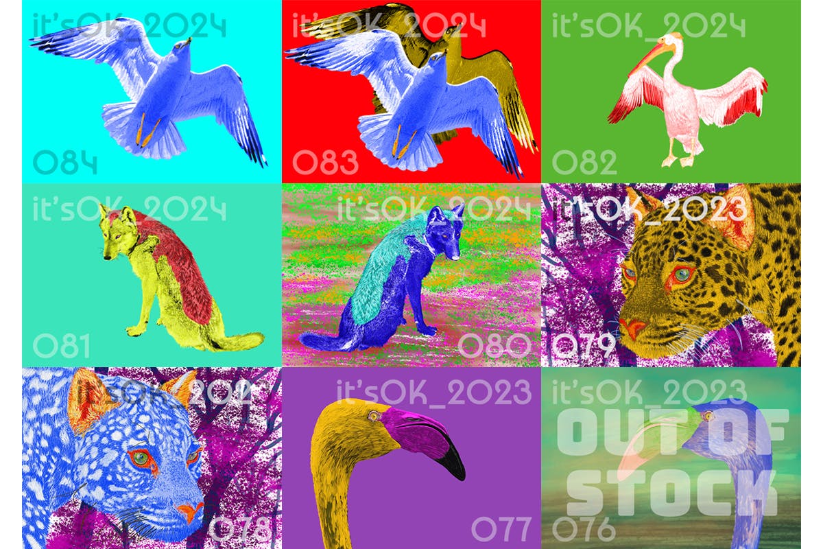 これまでにit’sOK(イツキ)は数十種類の動物をイラストにしてきました。詳しくは、本ページ最下部をご覧ください。現在も製作中のどうぶつ画や近代画風のものまで複数の作品があります。