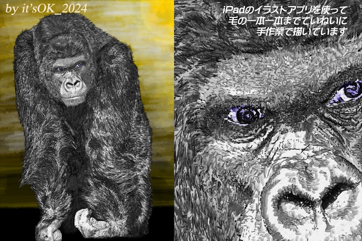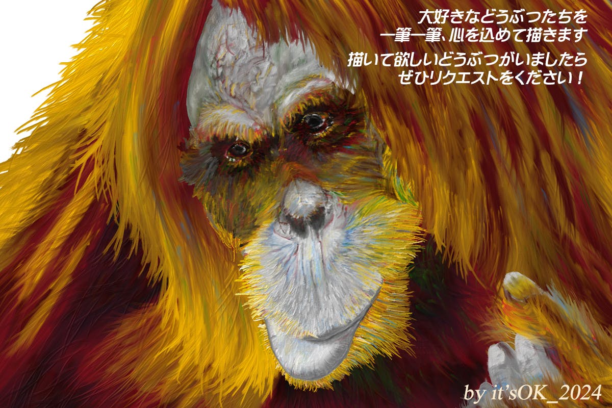 失業した後、家にずっと閉じこもってしまう状態になった時に、水彩画や油彩画のようなタッチで絵を描けるiPadのお絵かきアプリ「Adobe Fresco」に出会いました。最初は何の気なしに絵を描き始めたのですが、だんだんと過去に見た動物を思い出し、イラストにしていくようになりました。今までに動物園でIt’sOK(イツキ)自身がスマホなどで撮った写真も探してきて、それをずっと眺めて絵にしていく作業に没頭していきました。
