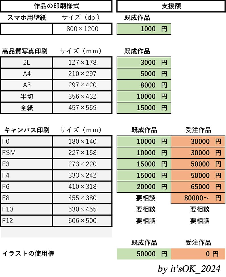 また、完全受注でのイラスト作成と高画質印紙またはキャンバスへの印刷での納品もお選びいただけます。