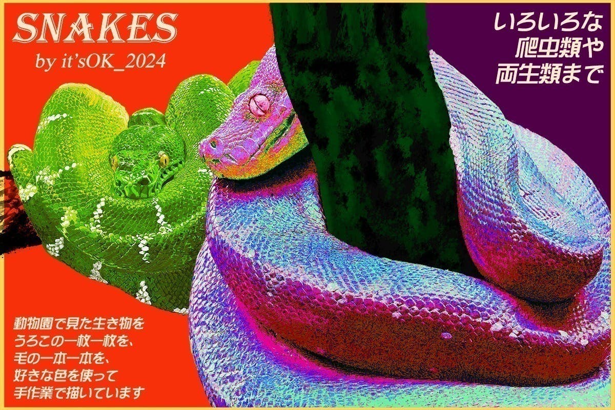 なるべく本物のように、毛の一本一本、うろこの一枚一枚、しわの一つ一つまで精密に、そして、本物のどうぶつたちとは違った色に、自分の見える世界の色に描いていく。気がつけばその作品数は100枚を超えました。