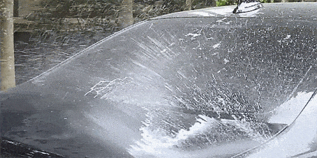高圧洗浄機ほどの水圧はないですが、洗車に使用するには十分すぎる水圧。タイヤのすき間といった細かい部分についたしつこい汚れもすっきり落とせます。