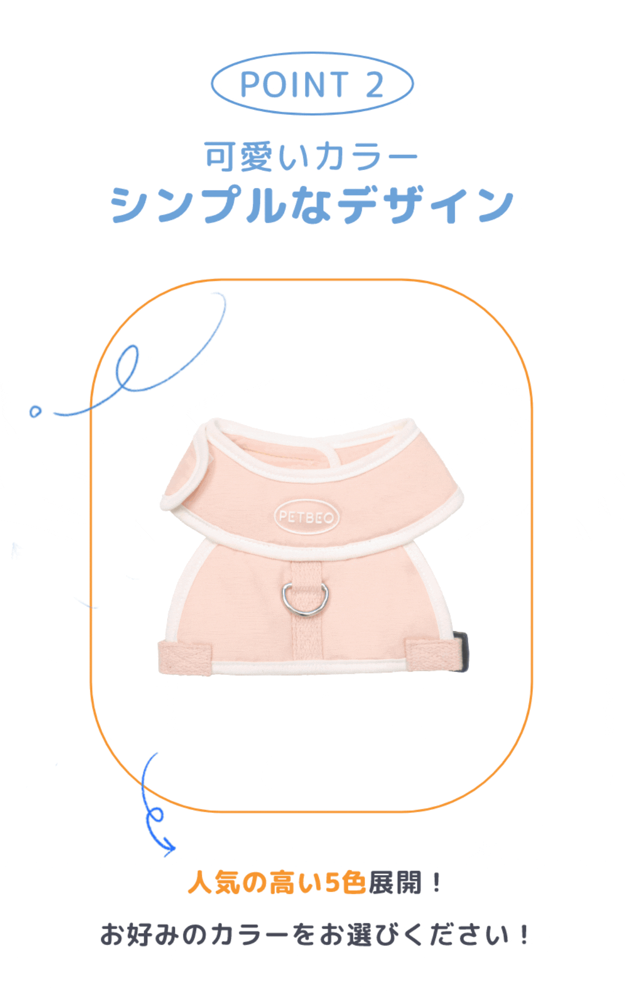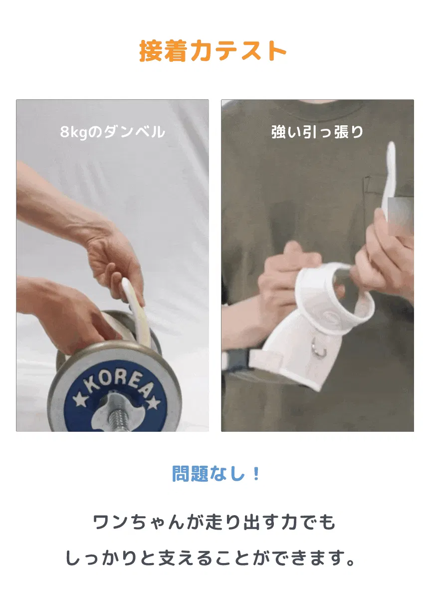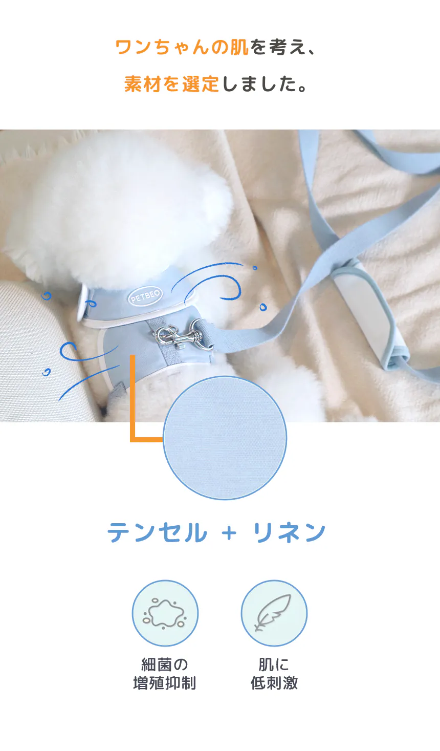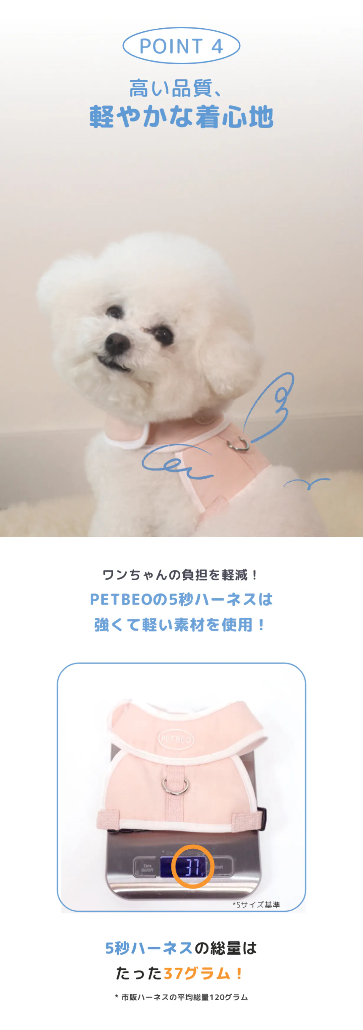 PETBEOの5秒ハーネスに使用している面ファスナーはイタリア製であり、優れた耐久性と接着力が特徴です。推奨している最低付着範囲は5cmとなります。