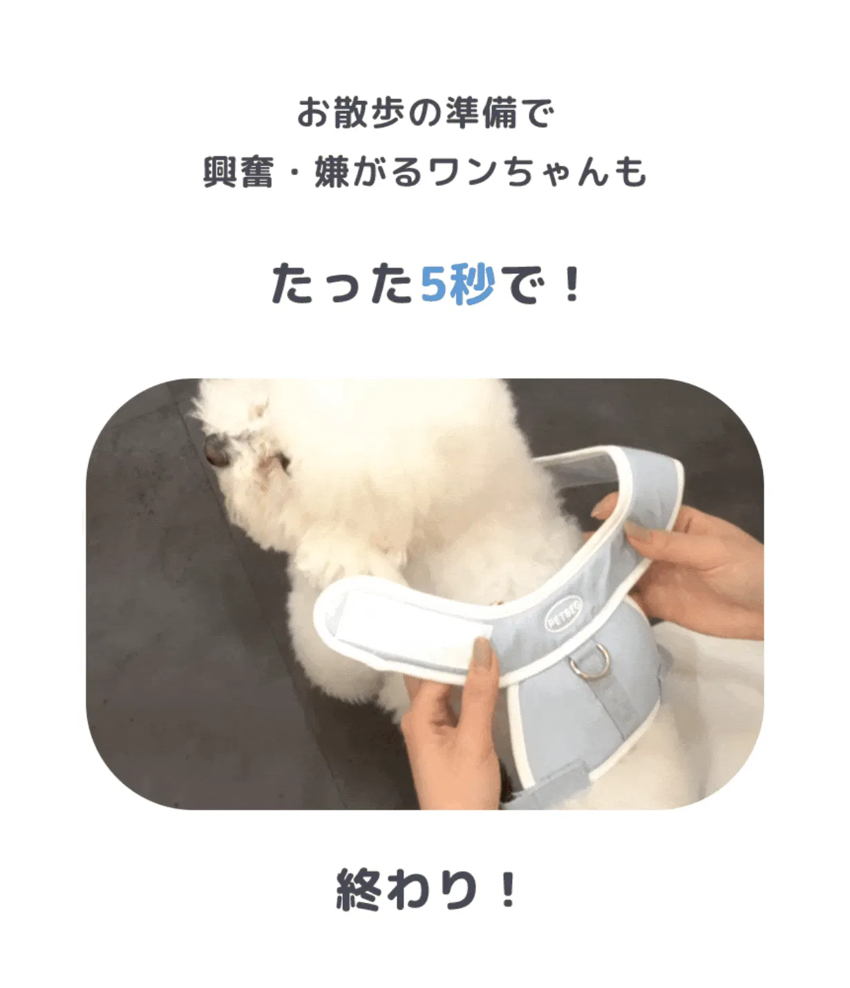 愛犬を大事にしたいと言う心がある待って完成した「5秒ハーネス」が、1匹でも多くの愛犬の散歩を楽しい時間にしてあげられることを祈っています!